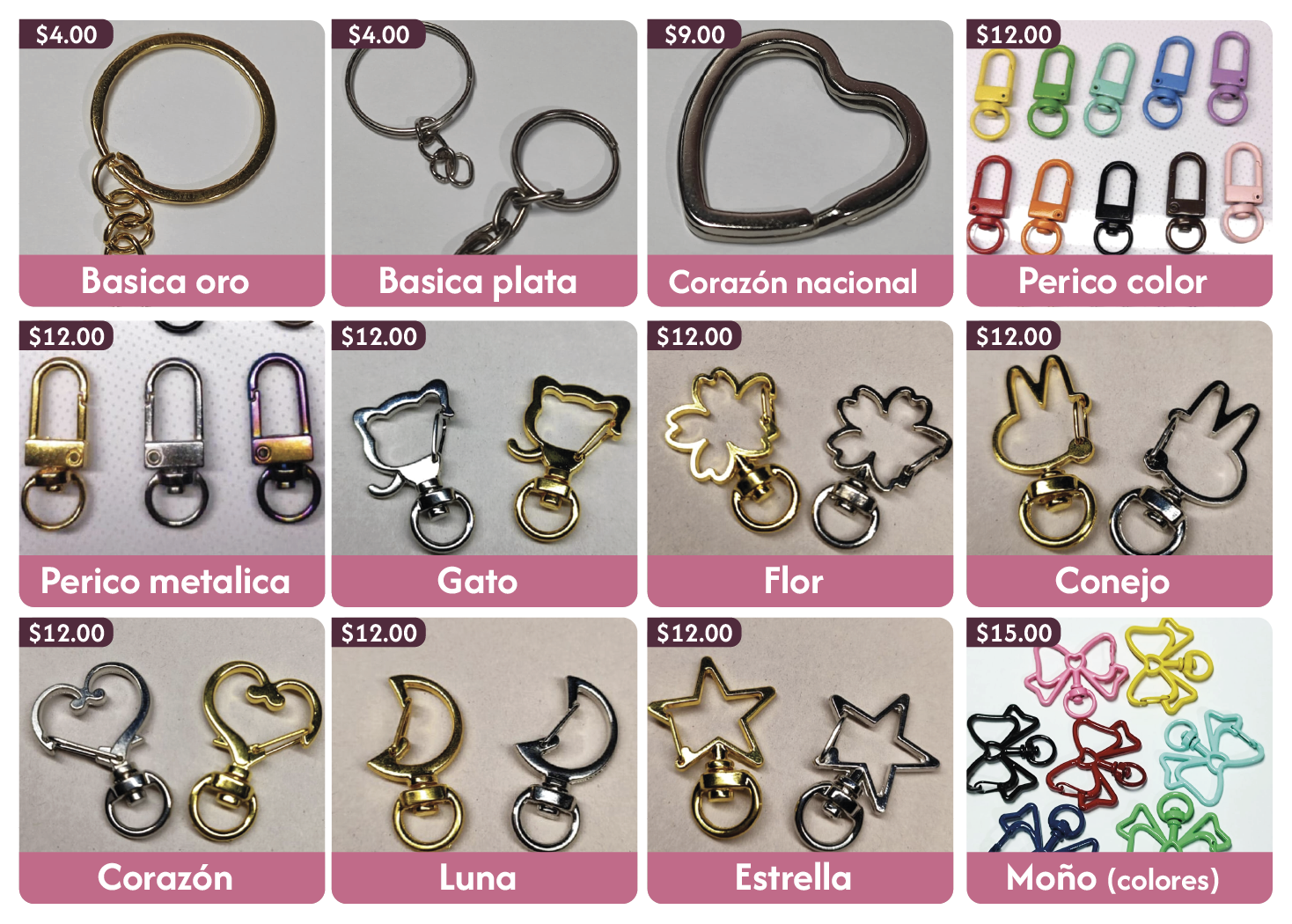 | Argolla basica | $4.00 | - | Argolla corazón nacional | $9.00 |