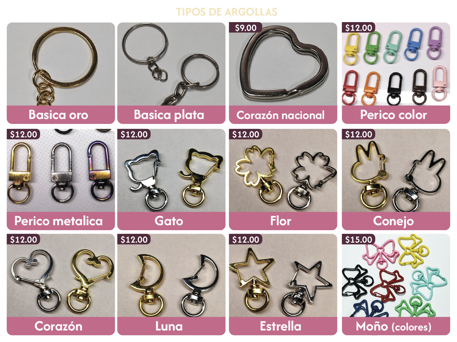 | Argolla basica | $4.00 | - | Argolla corazón nacional | $9.00 |